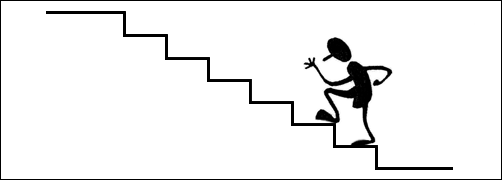 With Samantha, I talked about change being a process of small steps and contrasted this with trying to take one big step. I drew a diagram on my white board to represent this (see Diag. 1) in which a person swings between ‘all at once and going nowhere’ and ‘giving up and going nowhere’. I then contrasted these two extremes with ‘one step at a time and getting there’ (Diagram 2) which is a middle way for the polarities of ‘all at once and going nowhere’. If one step is too large, we can break it up into smaller steps and if those are too large, then we break them down into smaller steps and so on, until a step is found that can be taken. I also like to suggest that we zoom in as if we have a telephoto lens and keep doing this until we find steps that can be taken.