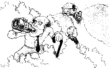 So Illisa decided to give the smallest coin he had to a servant boy, and sent him to the liquor store. When he returned, Illisa took him down to the riverside. He took the small bottle of liquor from the boy, and set him to stand watch nearby. Then Illisa the Cheap hid in the underbrush, poured some liquor into a cup, and secretly began drinking.